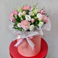 Коробка-сердце с розовыми гвоздиками и розами
