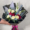 Букет гвоздик и роз с Мишкой на 14 февраля