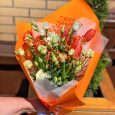 Оранжевый букет кустовых и пионовидных роз