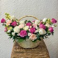 Букет из розовых роз и диантусов