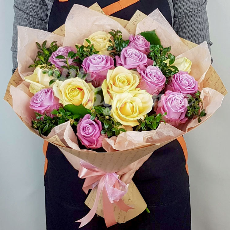 15 пышных роз в крафте