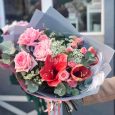 Букет из эустом и красных тюльпанов