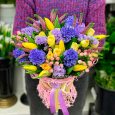 Букет из гвоздик, роз и тюльпанов