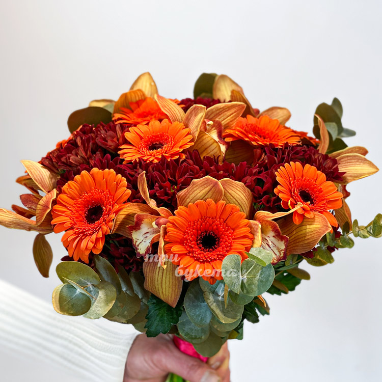 Букет из оранжевых гербер и орхидей