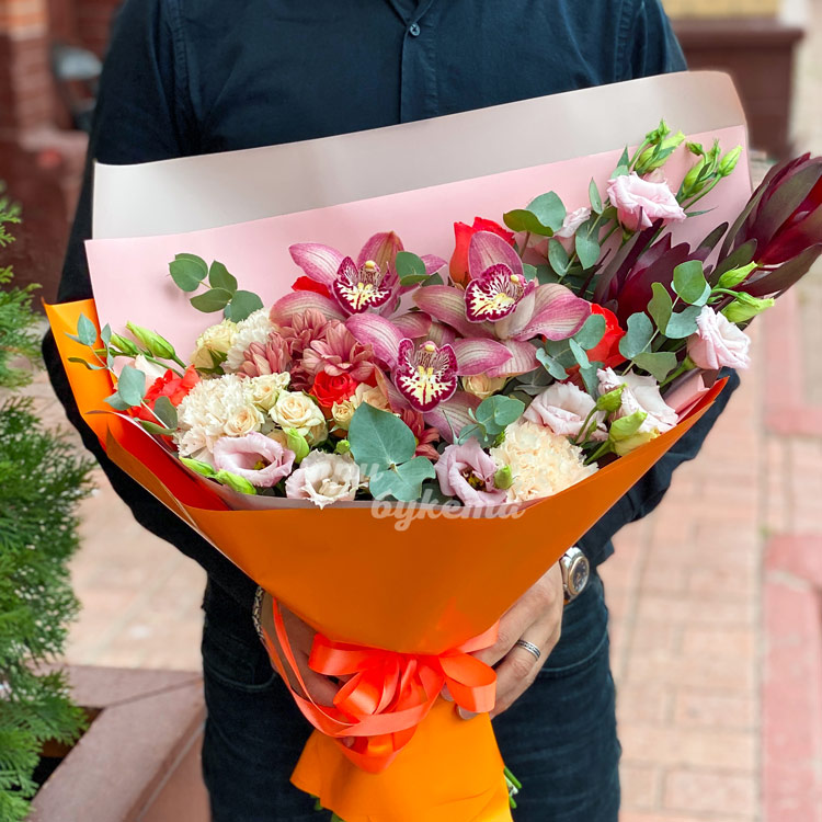 Букет из роз, орхидей и эустом