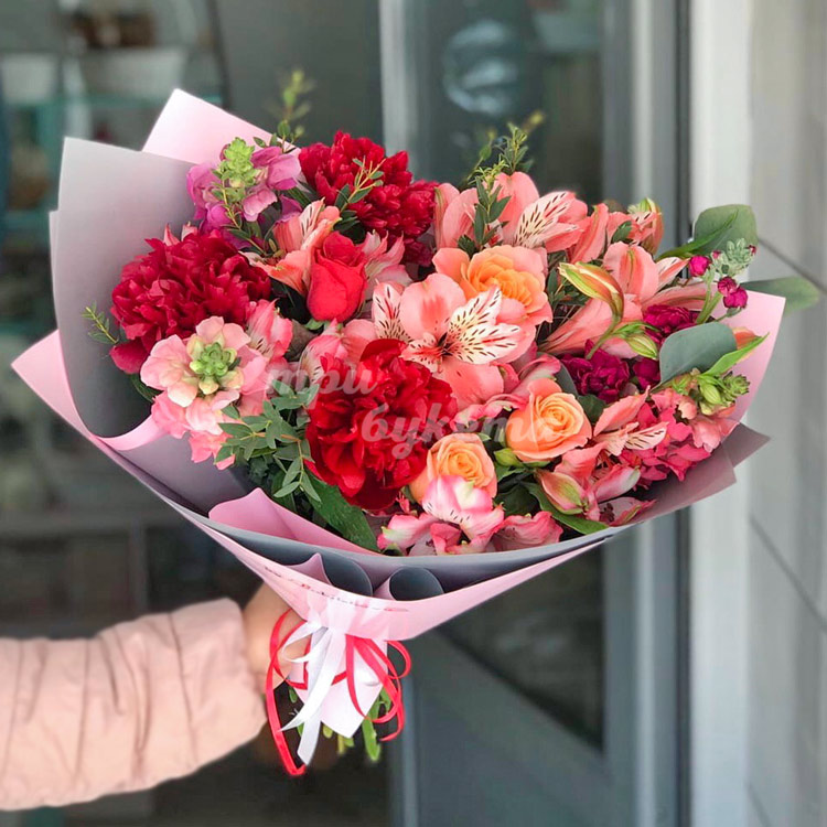 Букет из роз, пионов и антирринума