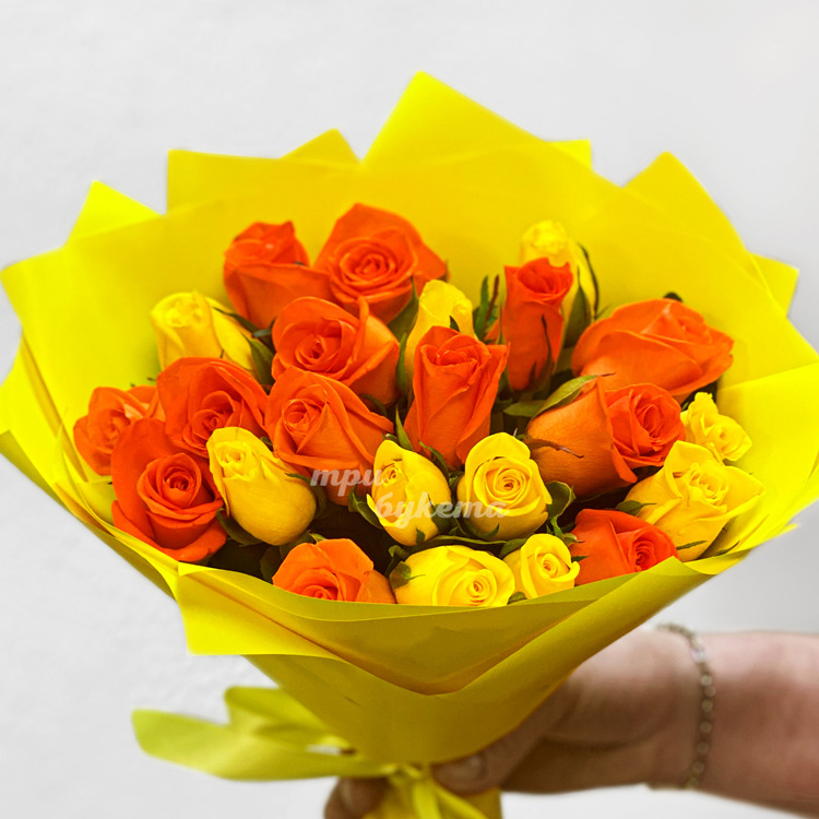 Букет из желтых и оранжевых роз