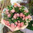 Букет кремовых роз и белых эустом