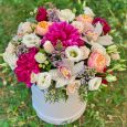 Коробка-сердце с розовыми гвоздиками и розами