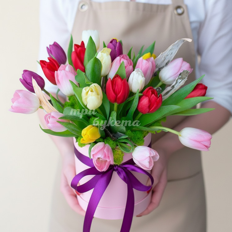 Тюльпаны на 8 марта в коробке